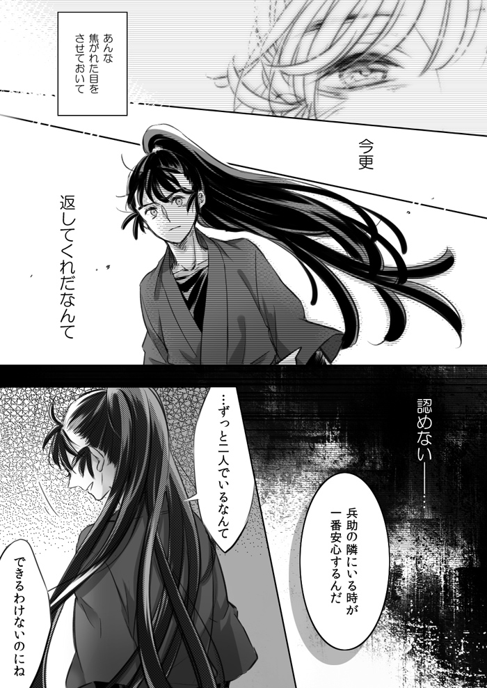 <10pの体温の話>……緊張すると体温が低くなるっていうじゃないですか。昔の兵助ってずっとそんな感じで、勘ちゃんはおそらく体温高い方だと思うので、お互いの体温を分け合って生きてたんですよね。